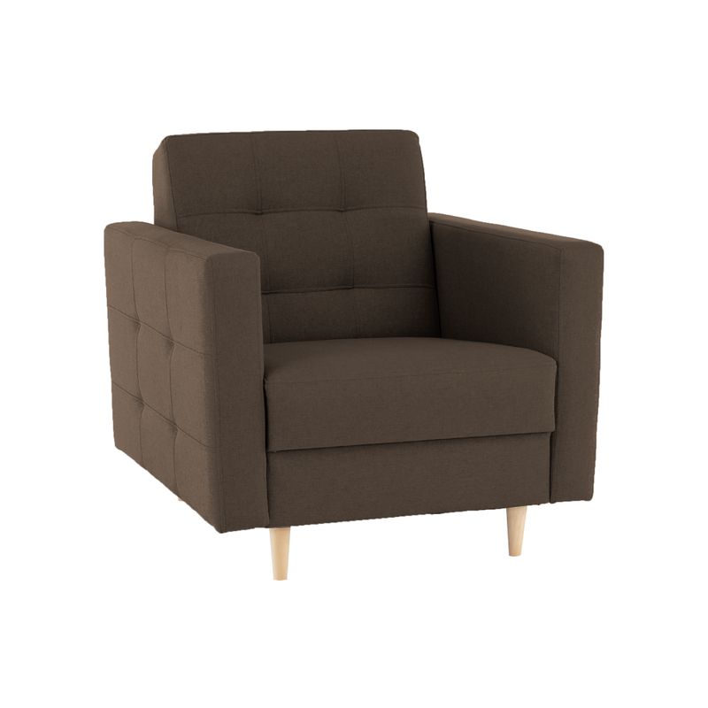 Celočalúnené kreslo v čokoládovej farbe, ktoré vyniká svojím nadčasovým dizajnom.