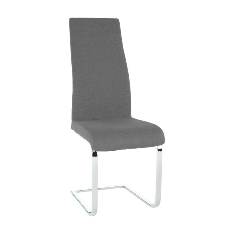 Elegantná tmavosivá jedálenská stolička s čalúneným sedadlom a chrómovou konštrukciou dodá vašej kuchyni moderný a útulný vzhľad.