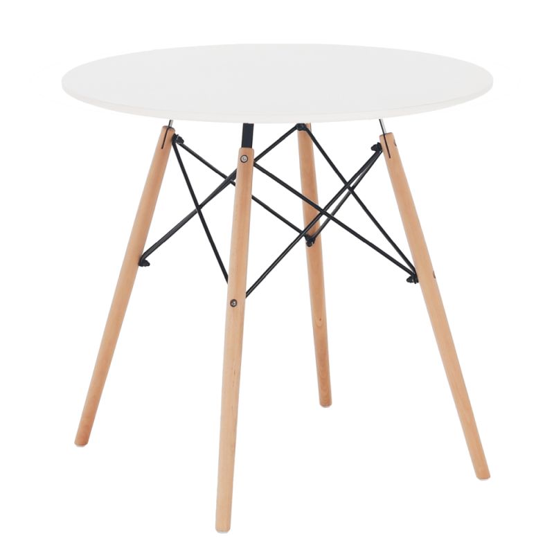 Okrúhly jedálenský stôl v kombinácii bukového dreva a bieleho plátu sa výborne hodí do menších priestorov. Ponúka praktické riešenie bez kompromisov na štýle a kvalite.