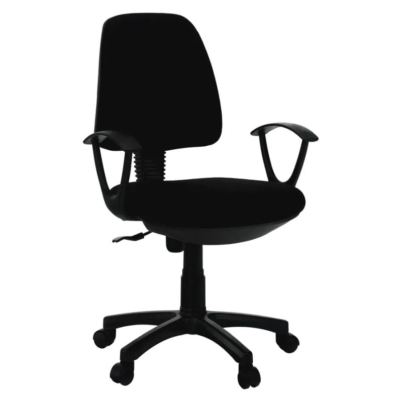 Jednoduchá kancelárska stolička v čiernej látke je navrhnutá tak, aby poskytovala základný komfort pri práci aj štúdiu. Mäkké čalúnenie zabezpečuje pohodlné sedenie počas celého dňa, zatiaľ čo nastaviteľná výška sedu umožňuje individuálne prispôsobenie