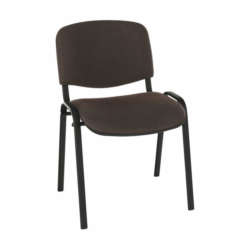 Stolička je vybavená pevnou kovovou konštrukciou v čiernej farbe, ktorá zaručuje jej stabilitu a dlhú životnosť. Čalúnené sedadlo a opierka v hnedej látke poskytujú pohodlie. Vďaka stohovateľnosti je ideálna do priestorov, kde potrebujete flexibilne upravovať počet miest na sedenie a šetriť priestor