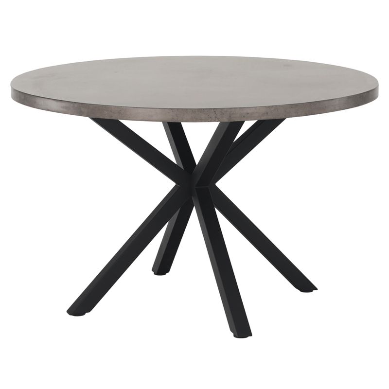 Okrúhly jedálenský stôl v industriálnom štýle, ktorý okamžite zaujme svojím výrazným dizajnom. Stolová doska v betónovom prevedení vytvára jedinečný kontrast s čiernymi kovovými nohami, ktoré stolu dodávajú stabilitu a robustný vzhľad. Tento stôl je nielen vizuálne atraktívny, ale aj praktický a vhodný do rôznych typov interiérov