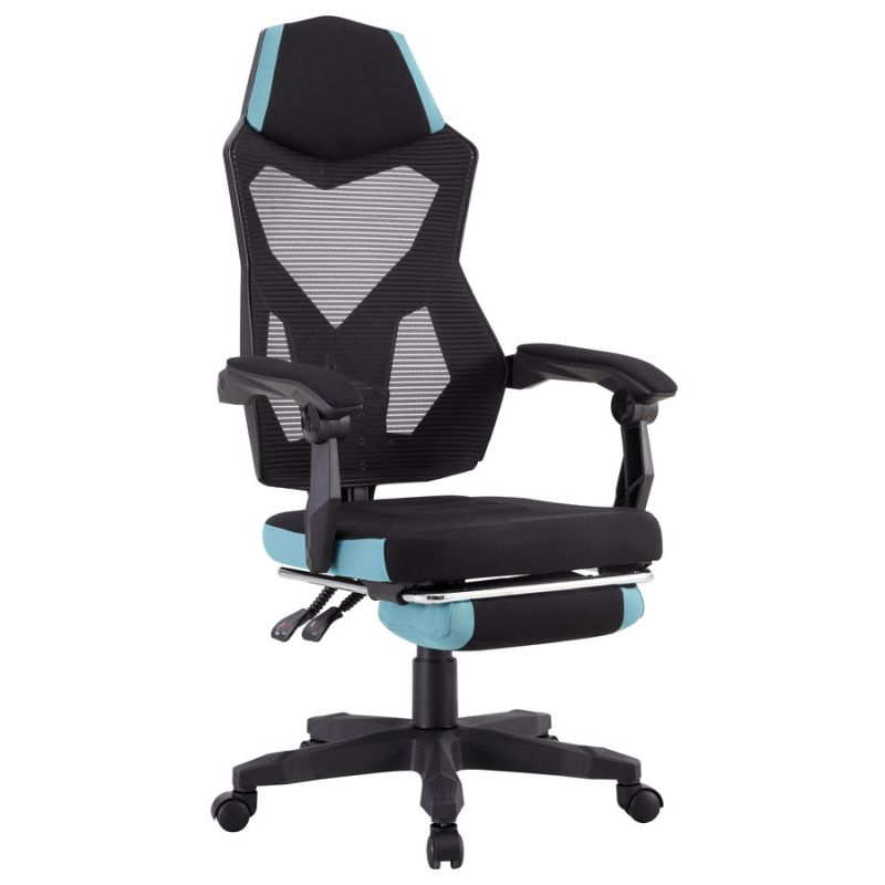 Toto herné kreslo kombinuje komfort a moderný dizajn v čiernej a neomint farbe. Ponúka polohovateľnú opierku chrbta, výsuvnú podnož a čalúnené opierky na ruky, vďaka čomu je ideálne na dlhé herné alebo pracovné sedenie