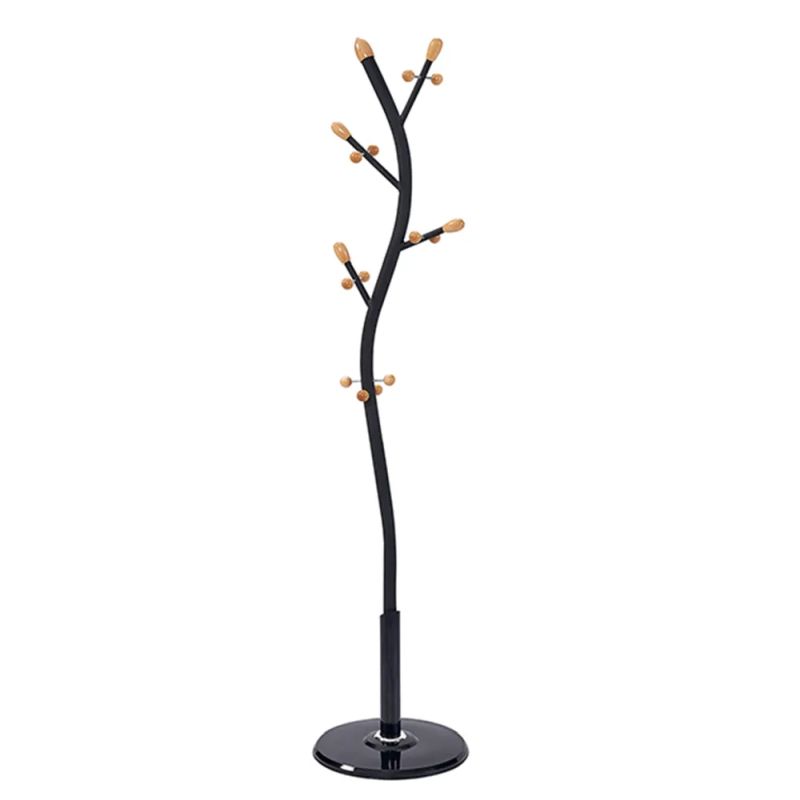 Elegantný stojanový vešiak s jemnými líniami, ktorý vniesie do vašej predsiene štýl a praktickosť. Neutrálna čierna farba sa ľahko kombinuje s rôznym interiérom. Stabilitu zaisťuje plastová podstava s priemerom 33 cm. Háčiky sú šikmo orientované pre pohodlné zavesenie kabátov a doplnkov