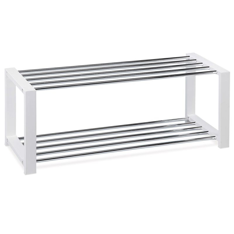 2-policový botník, ktorý spája čistý biely dizajn s lesklými chrómovými detailmi, je ideálnym a štýlovým riešením pre organizované uskladnenie obuvi.