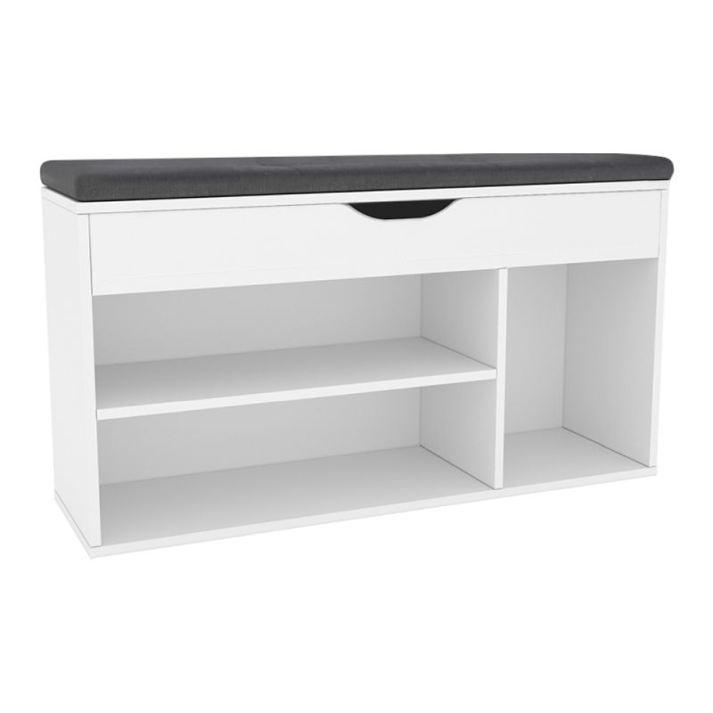 Praktický botník, ktorý kombinuje miesto na uskladnenie topánok aj pohodlné sedenie v predsieni. Má jeden dlhý šuplík a tri otvorené police pre lepšiu organizáciu