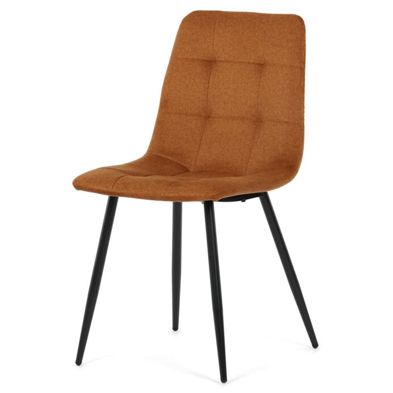 Čalúnená jedálenská stolička v teplom žltom odtieni je štýlovým a praktickým doplnkom do jedálne, kuchyne aj menšieho jedálenského kúta. Matná zamatová látka pôsobí mäkko, elegantne a príjemne na dotyk, zatiaľ čo dizajnové prešívanie na sedáku a operadle dodáva stoličke moderný charakter.