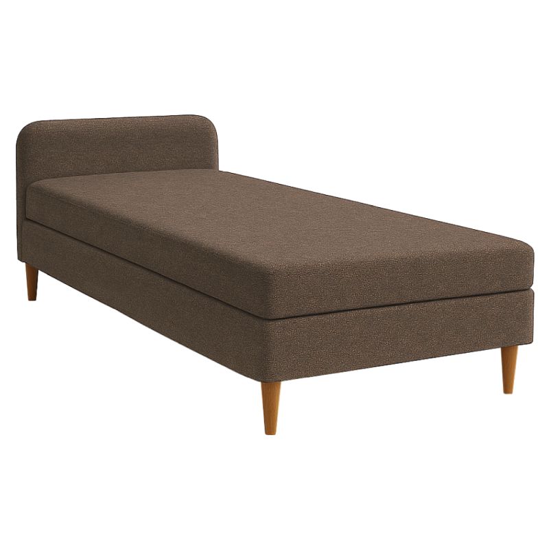 Vytvorte si útulný a štýlový priestor na oddych s jednolôžkovou čalúnenou posteľou v škandinávskom štýle. Poťah v hnedej látke Malmo pôsobí elegantne a nadčasovo, pričom jemné zaoblené čelo dodáva posteli sofistikovaný vzhľad.