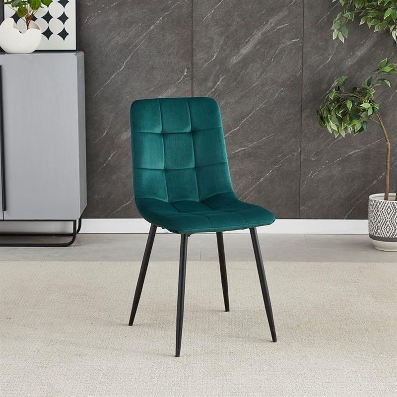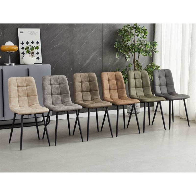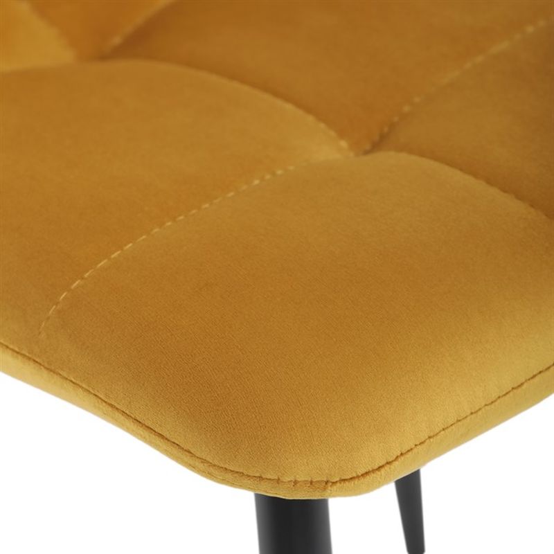 Poťah z látky z rôznych odtienov pôsobí elegantne a autenticky. Dekoratívne štvorcové prešívanie dodáva stoličke atraktívny vzhľad a podčiarkuje jej industriálny charakter. Štíhle čierne kovové nohy zabezpečujú stabilitu a výborne ladia s minimalistickým dizajnom interiéru.