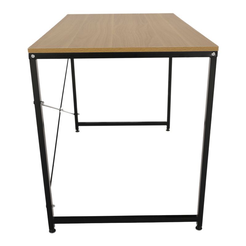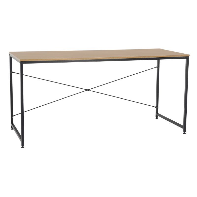 Robustný rám z čierneho kovu v kombinácii s laminovanou DTD doskou v prírodnom odtieni dub vytvára harmonický kontrast, ktorý sa hodí do moderného aj industriálne ladeného interiéru. Vďaka svojmu jednoduchému a čistému dizajnu sa skvele začlení do rôznych priestorov – od domácej pracovne až po izbu tínedžera.