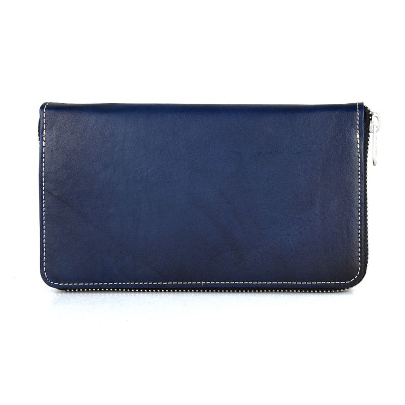 Dámska nákupná kožená peňaženka 8606 ručne tieňovaná v tmavo modrej farbe