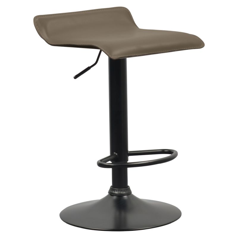 Barová stolička spája elegantný dizajn a funkčnosť, ideálna pre moderné interiéry. Sivohnedé Taupe ekokožné sedadlo s ergonomickým tvarom poskytuje komfort, zatiaľ čo výškovo nastaviteľné sedadlo umožňuje prispôsobenie podľa vašich potrieb. Kovová konštrukcia v čiernej farbe zabezpečuje stabilitu, a opierka na nohy zvyšuje pohodlie pri dlhšom sedení