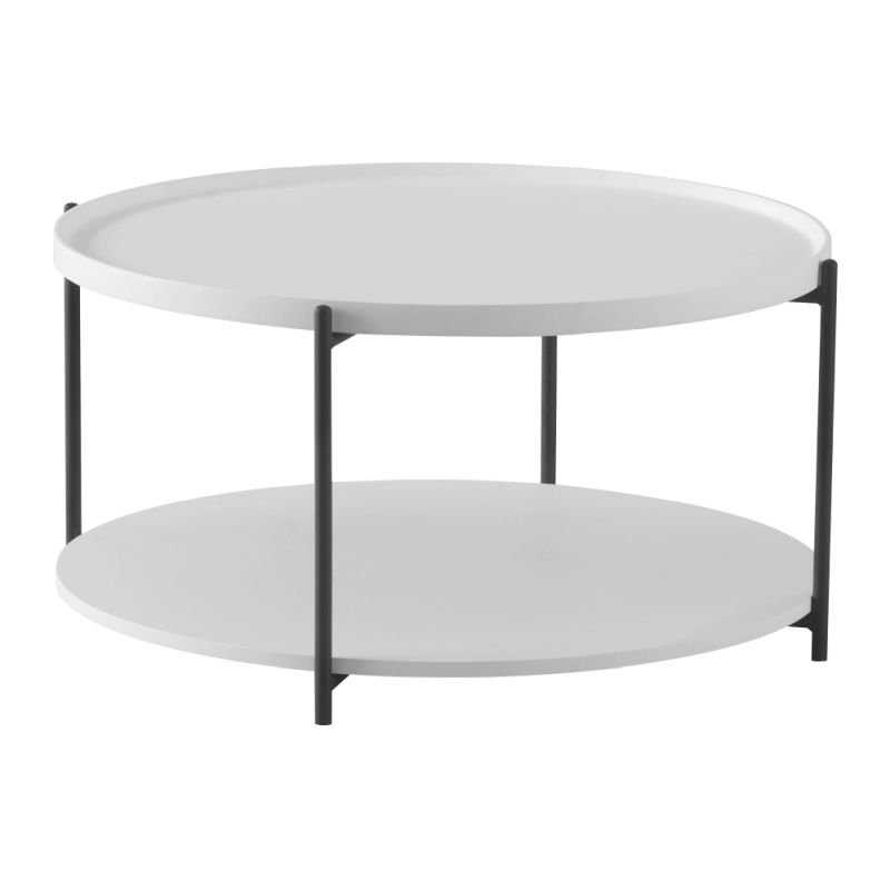 Vyrobený je z dvoch stolových dosiek z materiálu MDF v bielej farbe, ktoré prispievajú k jeho elegantnému vzhľadu. Kovové nohy v čiernej farbe zabezpečujú stabilitu a dodávajú stolíku moderný charakter