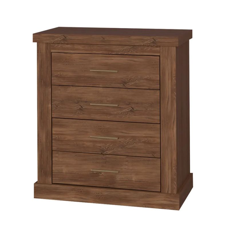 Komoda je vyrobená z DTD laminovanej dosky s hrúbkou 5 cm, ktorá verne napodobňuje masívny vzhľad. 3D efekt zvýrazňuje kresbu dreva a dodáva komode jedinečný charakter. Kovové úchytky podčiarkujú jej elegantný dizajn, ktorý skvele zapadne do modernej obývačky
