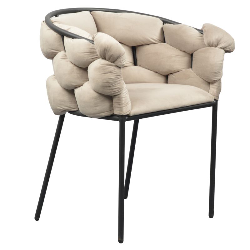 Jedálenské kreslo je ideálnou kombináciou pohodlia, štýlu a elegantného dizajnu. Je čalúnené jemnou Velvet látkou v odtieni sivohnedá Taupe, ktorá je príjemná na dotyk. Výrazné čalúnenie operadla a podrúčok vytvára dojem nadýchaného a pohodlného kresla. Štíhle čierne kovové nohy zaisťujú stabilitu a moderný vzhľad