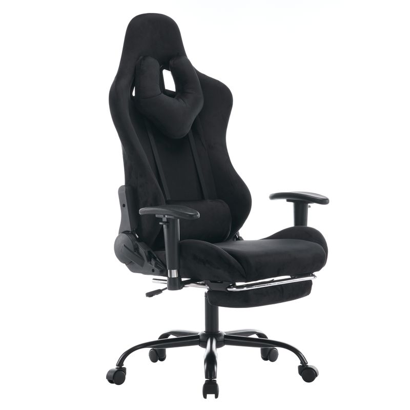 Elegantné kancelárske/herné kreslo s podnožou, čierna Velvet látka