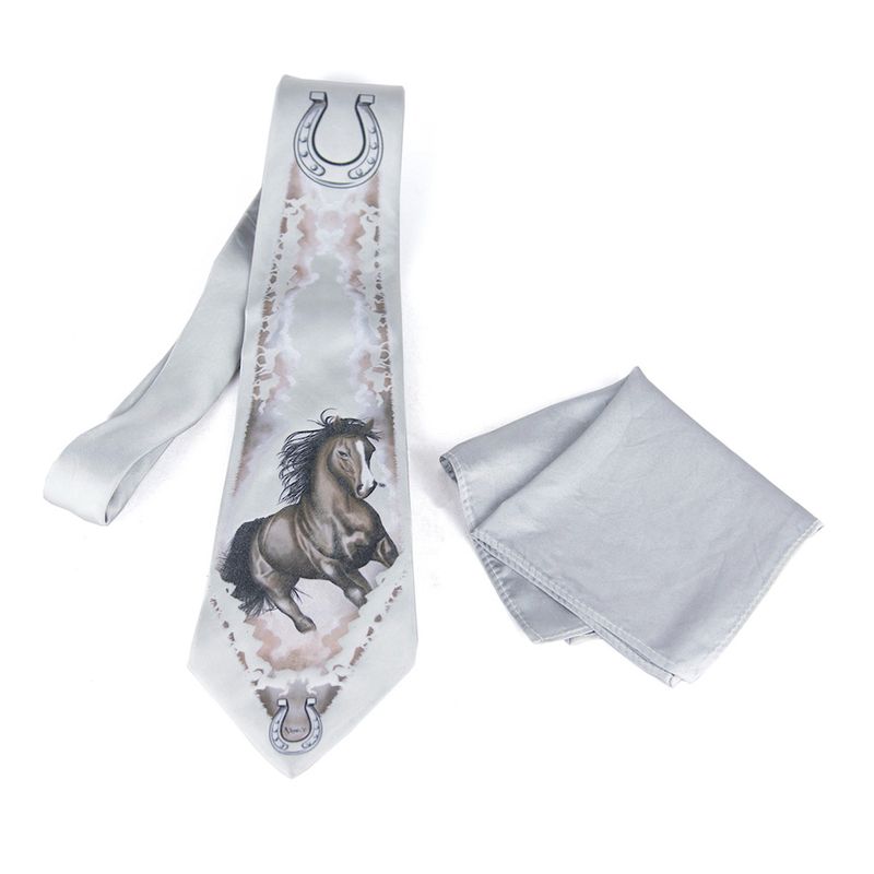 Hodvábna kravata s vreckovkou Strieborný Kôň, slovenská ručná výroba