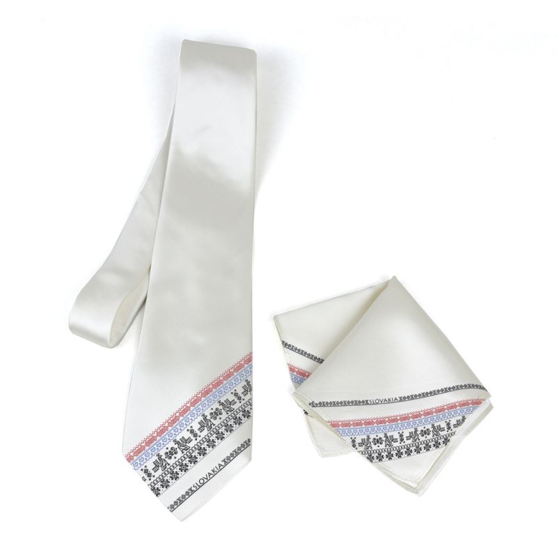 Hodvábna kravata + vreckovka - Slovakia Čičmany 100% hodváb