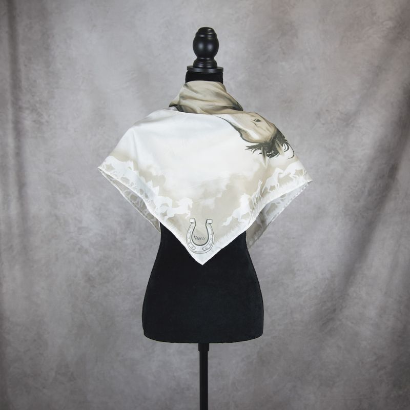 Na hodvábnej šatke je detailne spracovaný cválajúci kôň. Dámska šatka tak prezentuje Slovenskú faunu a flóru, kone, jazdectvo a hipoterapie ktoré majú na Slovensku dlhoročnú tradíciu. Kôň je symbol vznešenosti a čistoty a zároveň sa jedná o majestátne a úžitkové zviera. Hodvábna šatka s motívom koňov prezentuje toto zviera vznešený a luxusným spôsobom s ručnou potlačou na jednej z najdrahších a najčistejších prírodných tkanín na svete - hodvábe