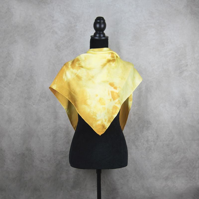 Táto handmade hodvábna šatka je vyrobená z 100% prírodného hodvábu typu crepe-satén, ktorý je známy svojím leskom a jemnosťou. Farby na šatke sú nanášané ručne a špeciálnym spôsobom zafixované vo vláknach hodvábu, čo zaručuje ich vynikajúcu kvalitu a trvanlivosť.