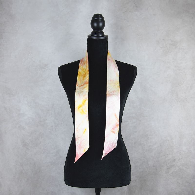 Unikátna hodvábna šatka Twilly v limitovanej edícii je skutočným klenotom medzi módnymi doplnkami. Každý kus je ručne farbený a šitý, vďaka čomu je originálny a nenapodobiteľný – existuje len jeden kus. Vyrobená zo 100% prírodného hodvábu typu crepe-satén, známeho svojím jemným leskom a luxusnou hebkosťou.