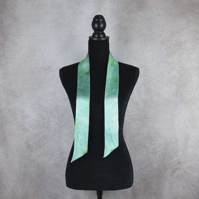 Unikátna hodvábna šatka Twilly v limitovanej edícii je skutočným klenotom medzi módnymi doplnkami. Každý kus je ručne farbený a šitý, vďaka čomu je originálny a nenapodobiteľný – existuje len jeden kus. Vyrobená zo 100% prírodného hodvábu typu crepe-satén, známeho svojím jemným leskom a luxusnou hebkosťou.