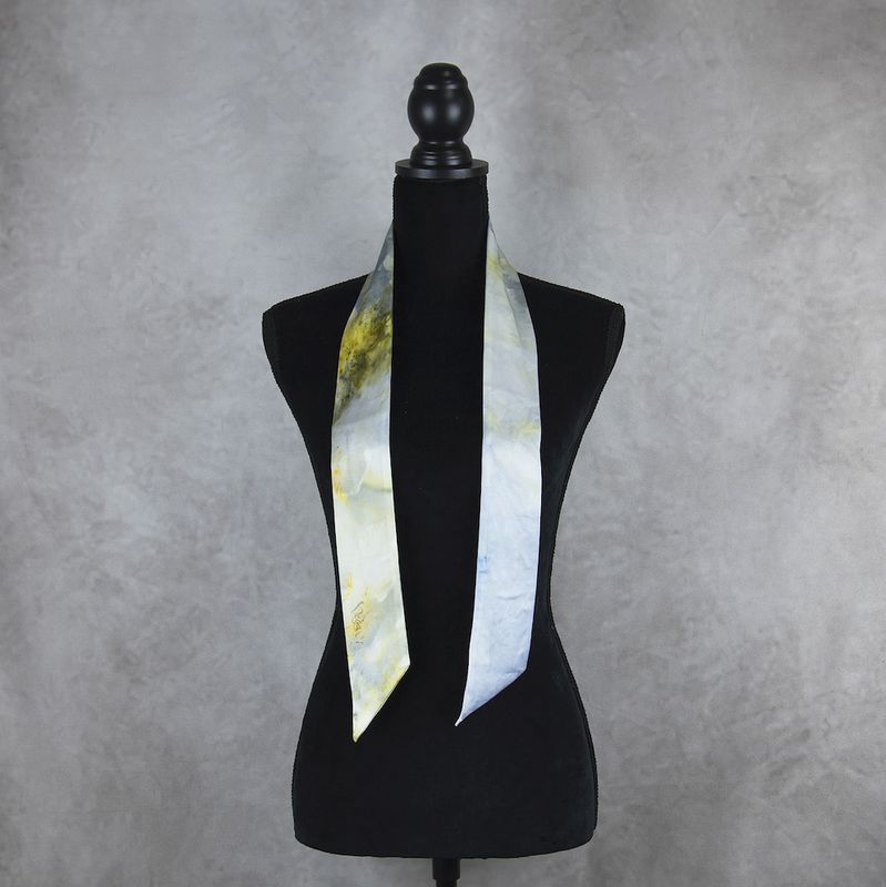 Unikátna hodvábna šatka Twilly v limitovanej edícii je skutočným klenotom medzi módnymi doplnkami. Každý kus je ručne farbený a šitý, vďaka čomu je originálny a nenapodobiteľný – existuje len jeden kus. Vyrobená zo 100% prírodného hodvábu typu crepe-satén, známeho svojím jemným leskom a luxusnou hebkosťou.