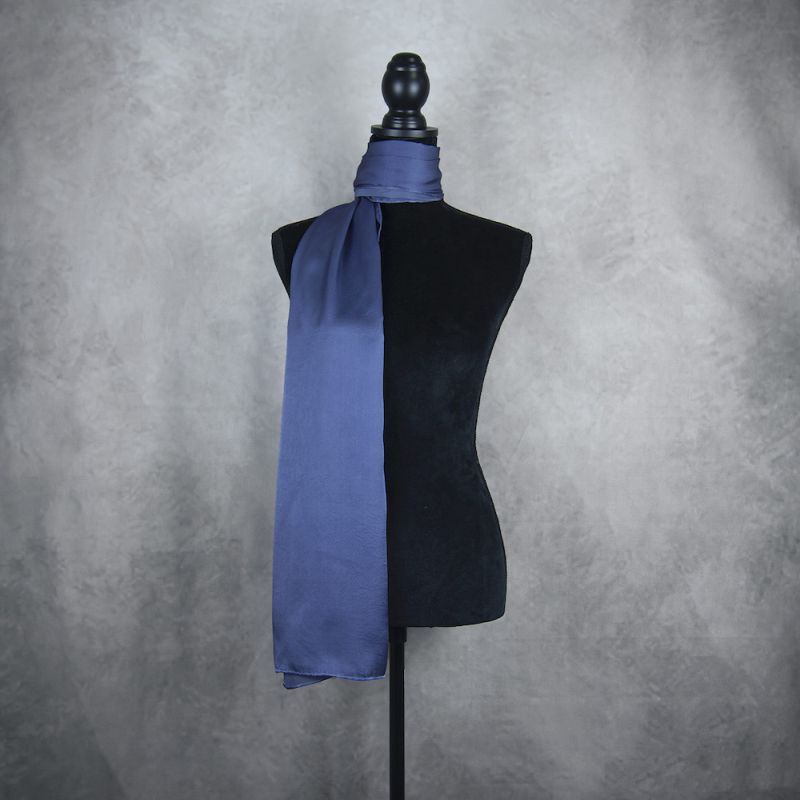 Elegantný antracitový hodvábny šál je vyrobený zo 100% prírodného hodvábu typu crepe-saten, ktorý sa radí medzi najluxusnejšie materiály na svete. Vďaka svojmu lesku a hebkosti pôsobí výnimočne luxusne a je nádherný na pohľad aj príjemný na dotyk