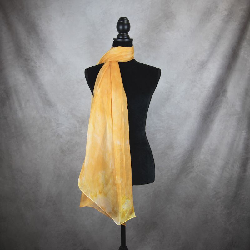 - Farbenie: Ručne farbený prírodným pigmentom, špeciálne určeným na hodváb