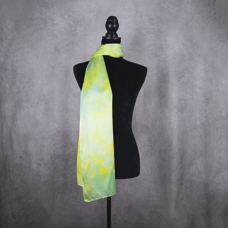 - Každý šál je ručne farbený prírodnými pigmentmi a starostlivo obšitý. Ručné rolovanie a prešívanie dodávajú šálu jedinečný luxusný vzhľad.