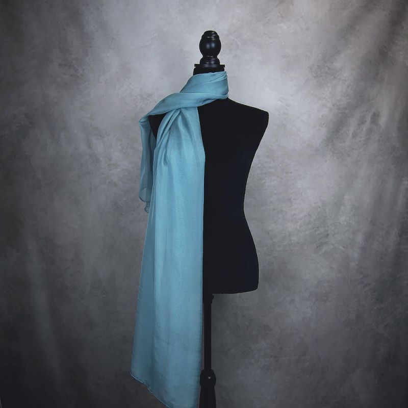 Hodvábny šál v petrolejovej farbe je ďalším luxusným výrobkom vyrobeným na Slovensku z pravého 100% prírodného hodvábu. Tento šál je nádherný na pohľad a príjemný na dotyk.
