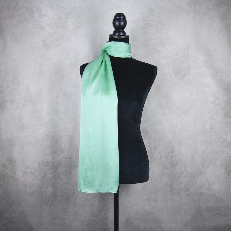 Elegantný smaragdovozelený hodvábny šál je vyrobený zo 100% prírodného hodvábu typu crepe-saten, ktorý sa radí medzi najluxusnejšie materiály na svete. Vďaka svojmu lesku a hebkosti pôsobí výnimočne luxusne a je nádherný na pohľad aj príjemný na dotyk