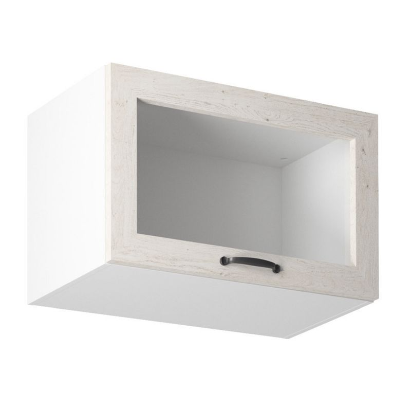 Horná skrinka so sklom G60KSN, biela-sosna nordická, 1x dvierka