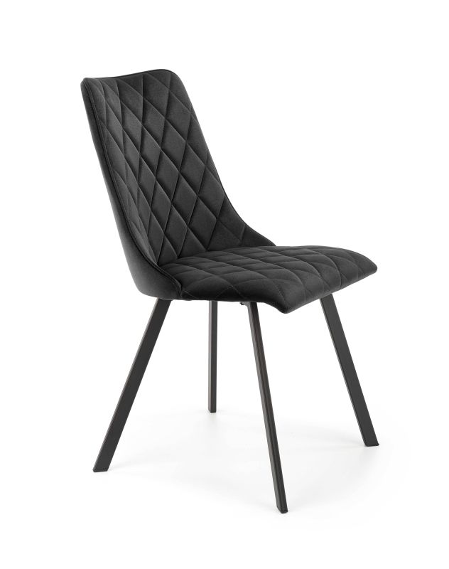 Luxusné Čalúnenie: Velvetové čalúnenie v čiernej farbe je nielen príjemné na dotyk, ale aj ľahko sa udržiava, čím pridáva stoličke ďalší estetický rozmer.