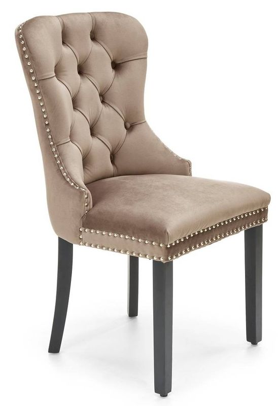 Elegantná a pohodlná jedálenská stolička, ktorá spája moderný dizajn s praktickosťou. Čalúnenie z jemnej zamatovej látky Bluvel v béžovom odtieni a pevná konštrukcia z masívneho kaučukového dreva poskytujú komfort aj dlhú životnosť. Stolička je vhodná do moderných jedální, kuchýň alebo obývacích priestorov, kde vynikne dekoratívnym prešívaním a chrómovými detailmi.