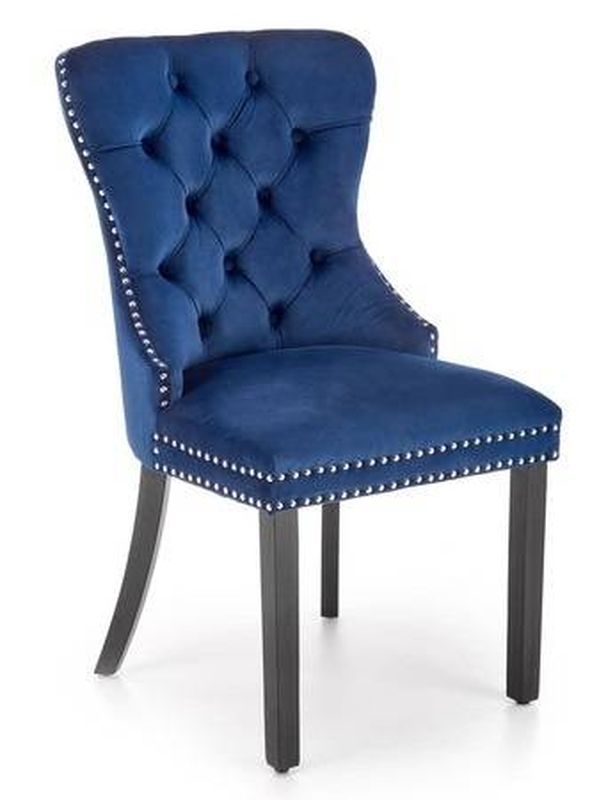 Elegantná jedálenská stolička kombinuje komfort, štýl a odolnosť. Čalúnenie zo zamatovej látky Bluvel poskytuje mäkké a pohodlné sedenie, zatiaľ čo dekoratívne prešívanie a chrómové detaily dodávajú stoličke luxusný vzhľad.