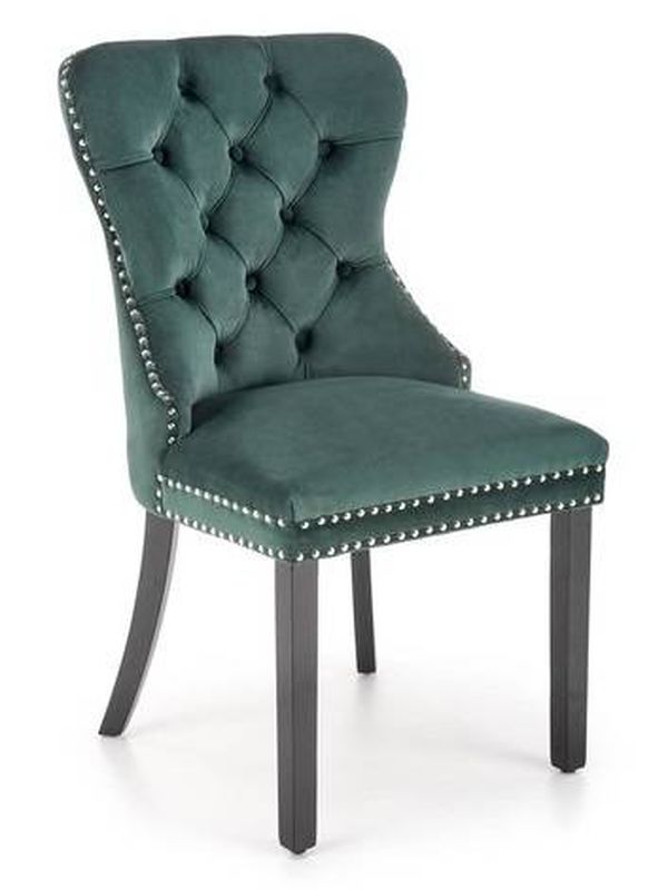 Elegantná jedálenská stolička spája komfort, štýl a odolnosť. Čalúnenie zo zamatovej látky Bluvel poskytuje mäkké a pohodlné sedenie, zatiaľ čo dekoratívne prešívanie a chrómové detaily dodávajú stoličke luxusný vzhľad.
