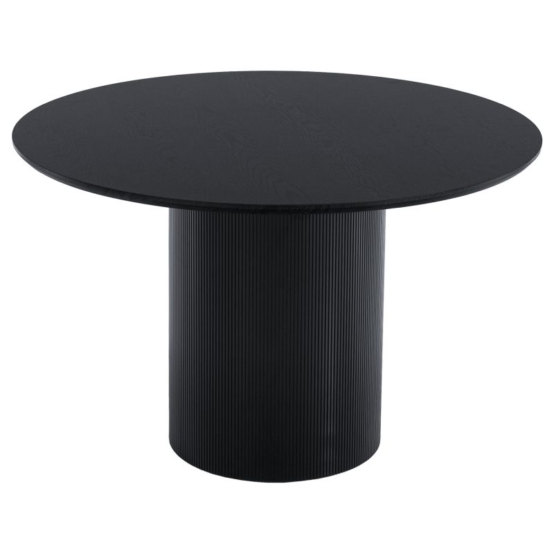 Tento moderný okrúhly jedálenský stôl s čiernym dyhovaným MDF platom a konštrukciou je štýlovým a elegantným doplnkom do každého interiéru. Jeho premyslený dizajn a kvalitné spracovanie zaručujú dlhú životnosť a estetický vzhľad