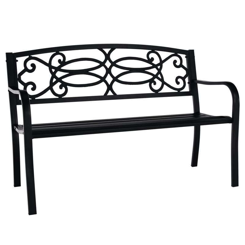 Šarmantná záhradná lavička, ktorá poskytuje pohodlný odpočinok vždy, keď to potrebujete. Vyrobená z pevného kovu v elegantnej čiernej farbe s krásnym ornamentom na operadle