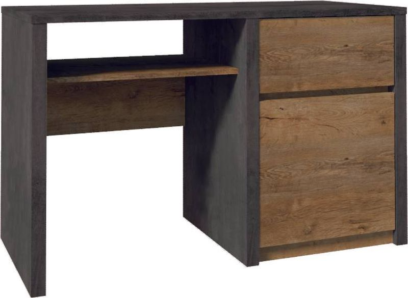 Jednoduchý a elegantný písací stôl, kombinujúci odtiene Lefkas Ciemneho a Smooth Grey, je ideálnym riešením pre moderné domáce kancelárie alebo pracovné priestory. Jeho kompaktné rozmery a efektívne usporiadanie z neho robia praktický a štýlový nábytok, ktorý poskytne dostatok pracovného priestoru a zároveň bude výrazným doplnkom interiéru.