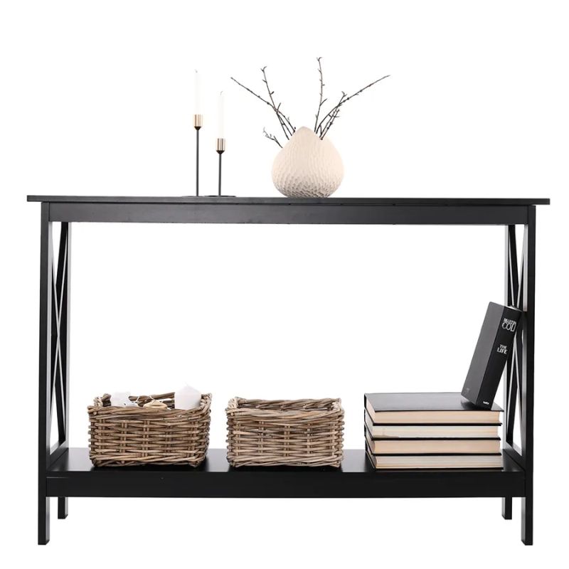 Minimalistický a štýlový konzolový stolík v čiernom prevedení z MDF. Skvelo doplní obývačku, predsieň, spálňu alebo vstupnú halu. V spodnej časti je praktická polica na odkladanie