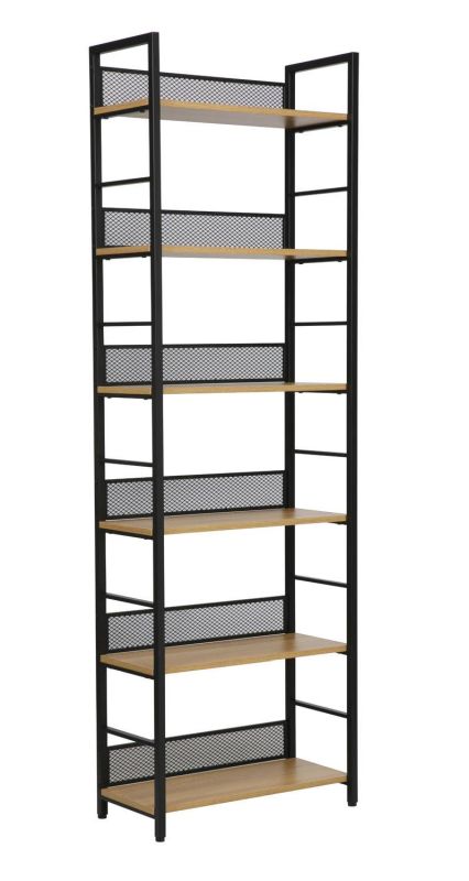 Jednoduchý regál R6 v kombinácii dekorov dubu a čierneho matu je praktickým a štýlovým doplnkom do každého moderného interiéru. S výškou 187 cm poskytuje tento regál dostatočný úložný priestor pre knihy, dekorácie alebo iné predmety, pričom zachováva minimalistický a čistý vzhľad. Jeho konštrukcia z kovu zabezpečuje stabilitu a dlhodobú trvanlivosť, zatiaľ čo laminované police vytvárajú moderný a atraktívny vzhľad. Regál je ideálny pre použitie v obývacej izbe, kancelárii alebo študovni.