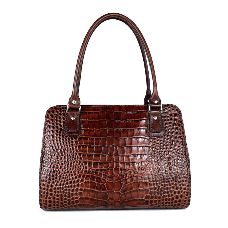 Kabelka z pravej hovädzej kože s dezénom krokodíla v hnedej farbe