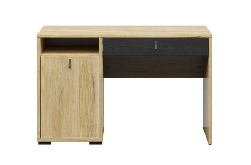 Kancelársky stolík v kombinácii jaseňa belorus a duba čierneho je ideálnym riešením pre každého, kto hľadá funkčný a zároveň štýlový pracovný stôl. Jeho praktické usporiadanie, dostatočný pracovný priestor a originálna kombinácia farieb vytvoria v každej kancelárii jedinečný interiér.