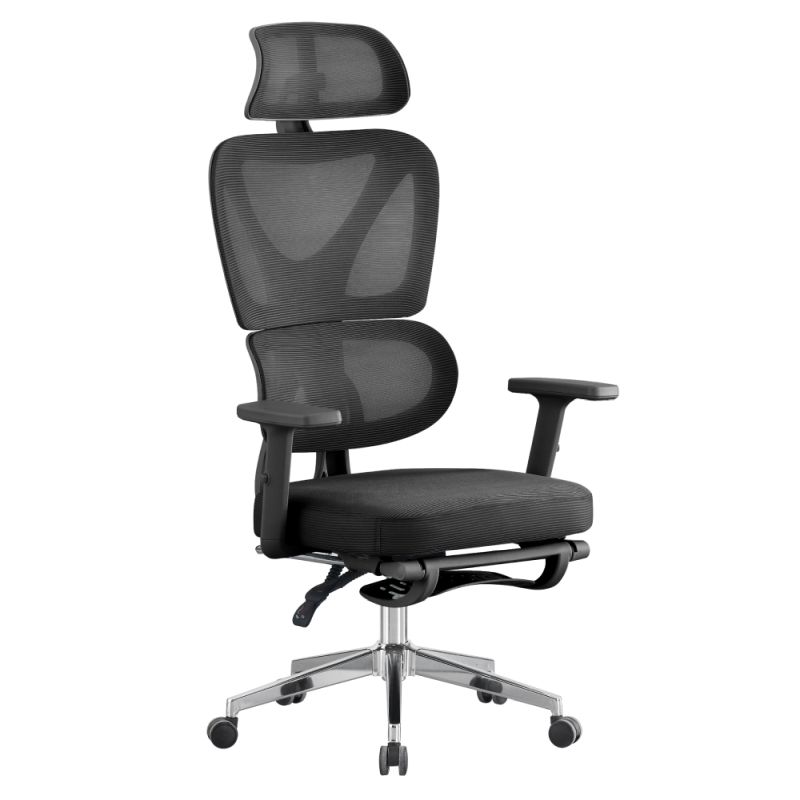 Kreslo je vybavené priedušnou čiernou sieťovinou, ktorá sa prispôsobuje tvaru chrbta a zabezpečuje optimálnu ventiláciu aj pri dlhodobom sedení. Ergonomicky tvarovaná chrbtová opierka s bedrovou podporou, nastaviteľná opierka hlavy a opierky na ruky prispievajú k zdravému držaniu tela. Praktická výsuvná podnož umožňuje pohodlný relax bez zbytočného zaberania miesta. Stabilná chrómová konštrukcia spolu s univerzálnymi kolieskami zaručuje spoľahlivosť a jednoduchú manipuláciu pri každodennom používaní.