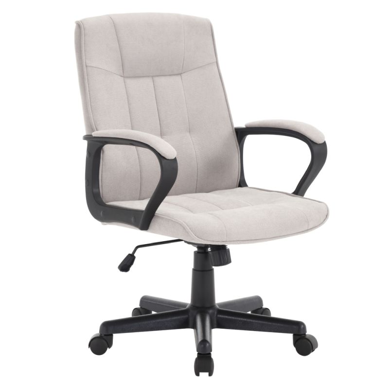 Kancelárske kreslo spája elegantný dizajn so špičkovým komfortom, ideálne do kancelárie, domácej pracovne či študovne. Čalúnenie zo svetlosivej látky pôsobí štýlovo a stabilná čierna plastová podstava s kolieskami zabezpečuje pevnosť a mobilitu