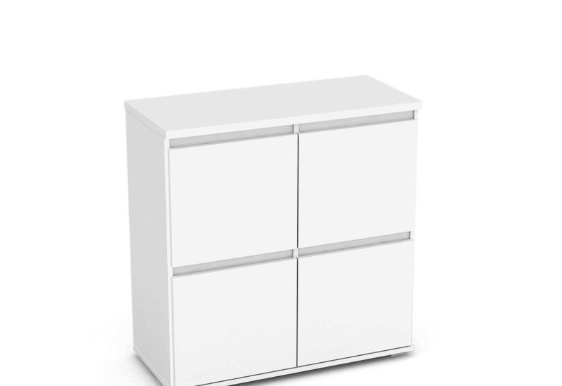 Vysoká kontajnerová komoda so štyrmi veľkými zásuvkami uloženými v dvojrade nad sebou, ideálna pre izbu, predsieň či kanceláriu. Komoda má bezúchytkové otváranie a moderný, jednoduchý dizajn.