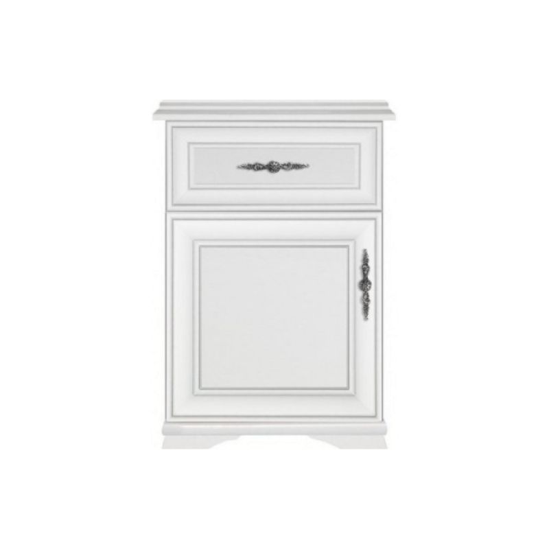 Praktická komoda v jemnej alpskej bielej farbe vnesie do vášho interiéru nadčasový a čistý štýl. Vyrobená z laminovanej DTD s kovovými úchytkami v prevedení antické striebro. Komoda KOM1D1SL/P ponúka úložný priestor v podobe jedného šuplíka a jednodverovej skrinky s policou, pričom dvierka sú univerzálne a môžete ich namontovať na pravú alebo ľavú stranu