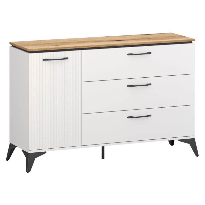 Komoda kombinovaná 1D3S, biela, dub evoke s ryhovanými dvierkami