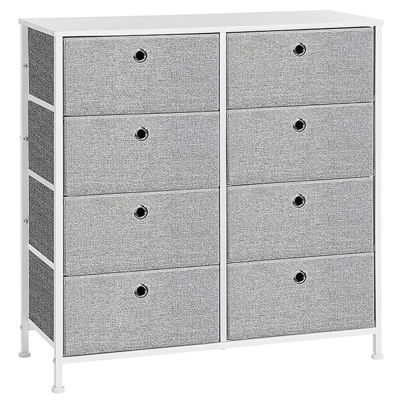 Komoda s ôsmimi látkovými zásuvkami v bielom-sivom prevedení